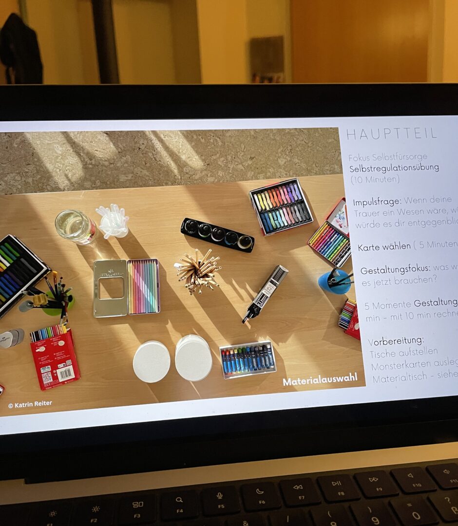 Die Teilnehmenden erwartet eine kurze Präsentation mit Praxisbeispiel sowie eine Übung mit Selbsterfahrung. Im Zentrum steht die Frage, wie Gefühle der Trauer sichtbar, differenzierbar und gestaltbar werden können. Katrin Reiter, Kunsttherapeutin und Entwicklerin der Trauervoll-Kartensets, gibt einen praxisnahen Einblick in deren Entstehung und Anwendung in der kunsttherapeutischen Arbeit.